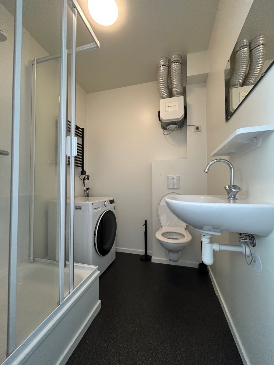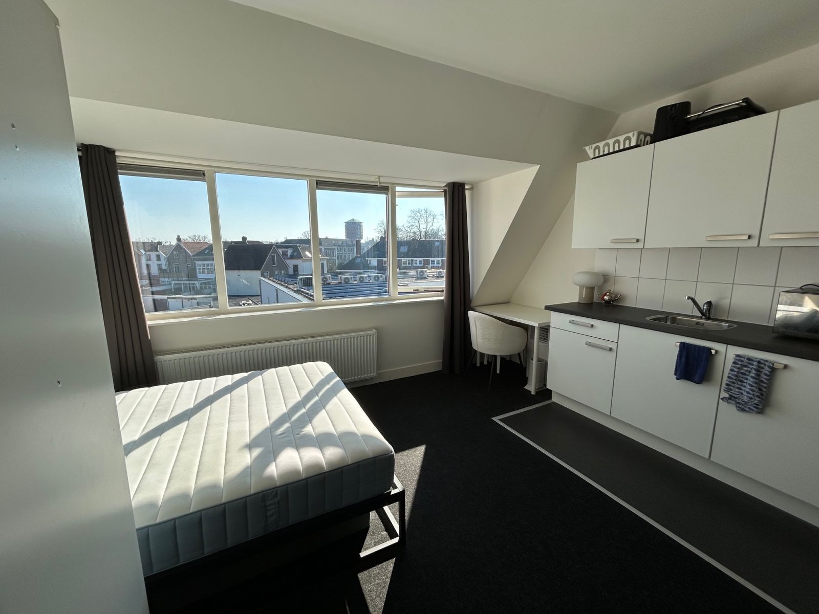 De studio is gelegen op de tweede verdieping aan de achterzijde van het pand. De studio beschikt over een keuken met kookplaat, afzuigkap en koel-vriescombinatie. De badkamer beschikt over een douchecabine, wastafel en wasmachineaansluiting. Tot slot beschikt het pand over een gezamenlijk dakterras.
