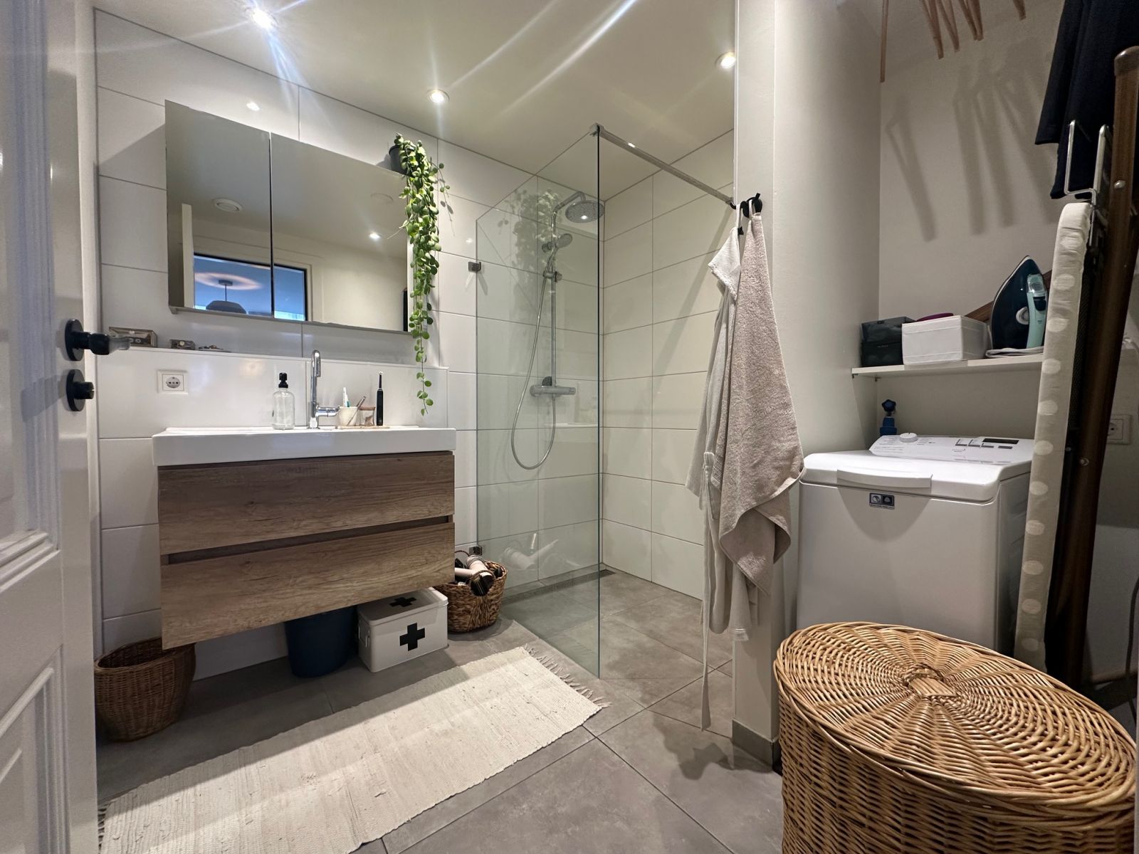 De badkamer bestaat uit een inloop regendouche, wastafelmeubel en een wasmachine aansluiting.