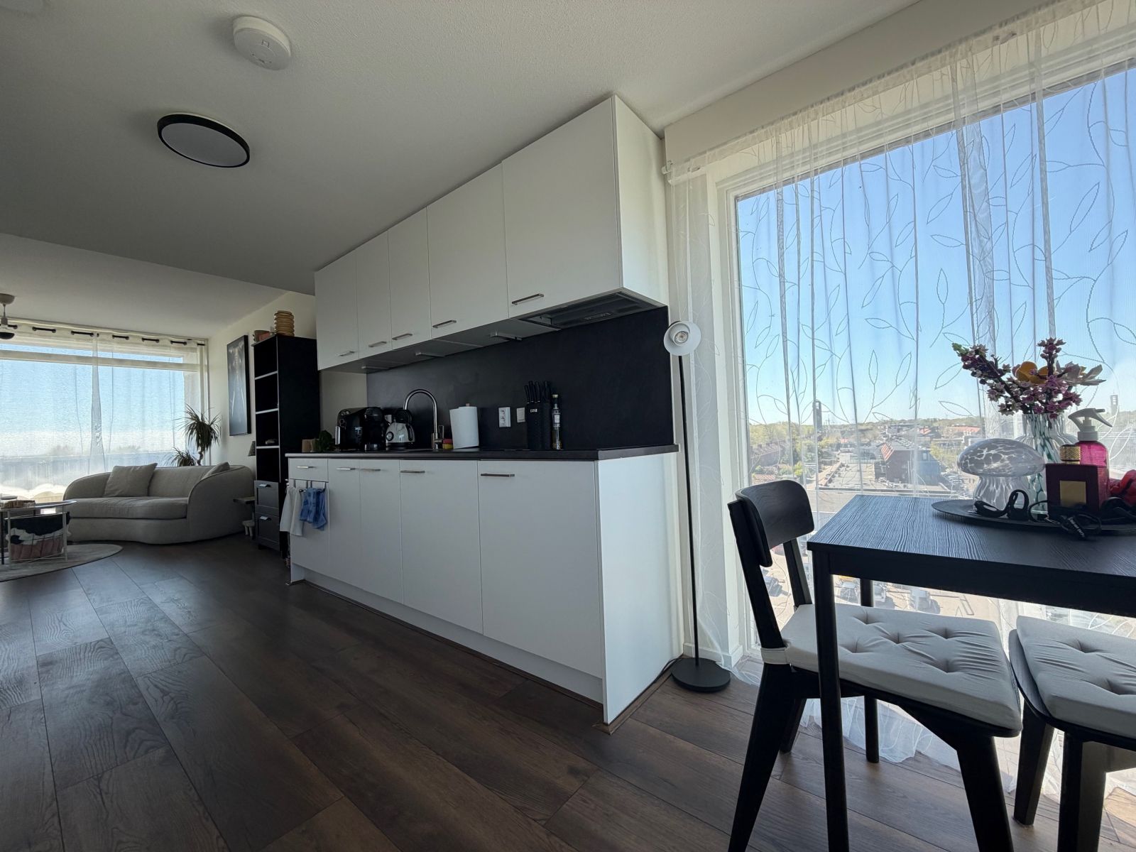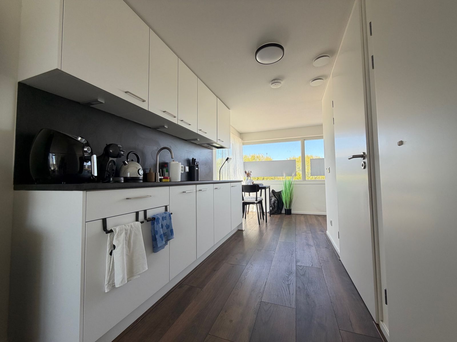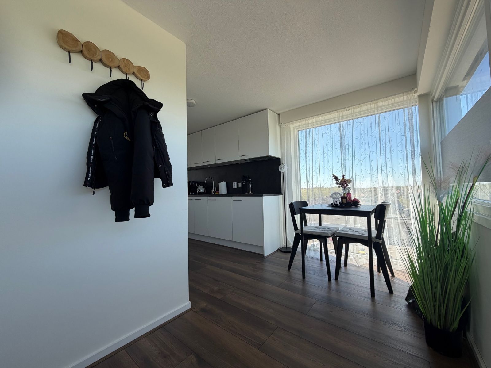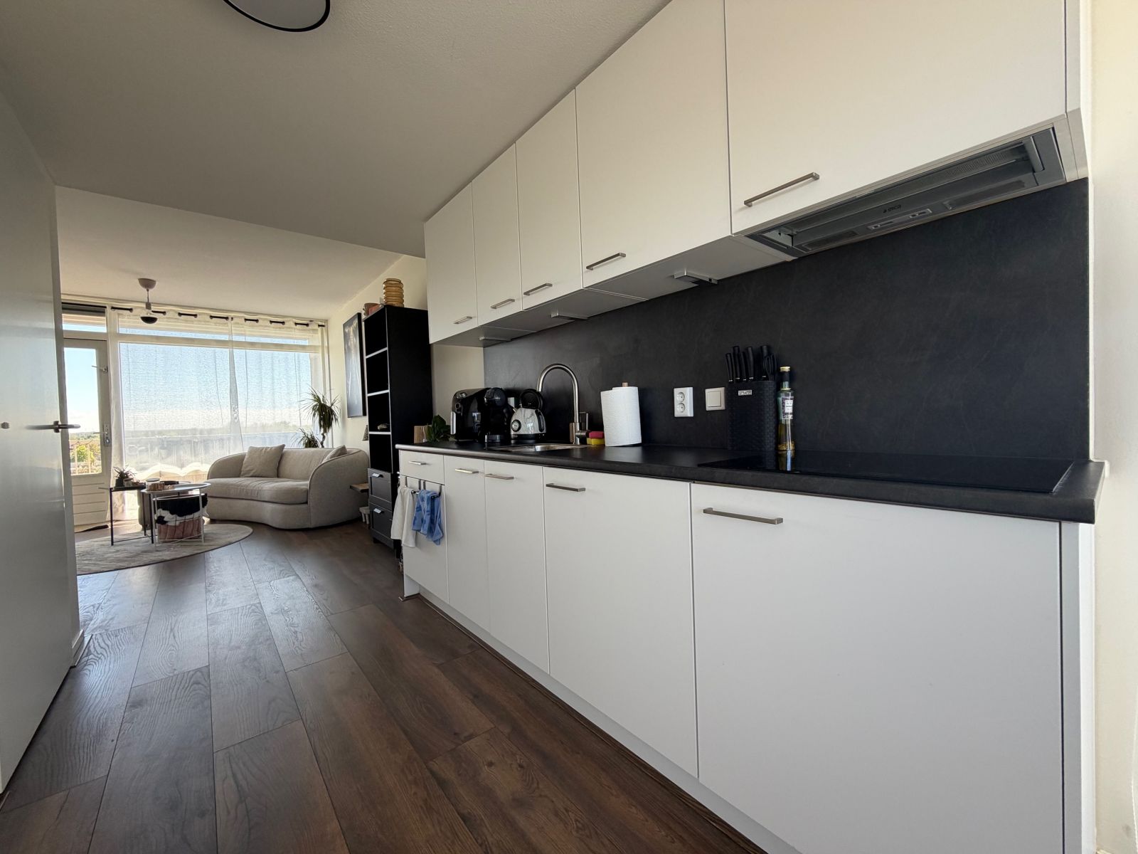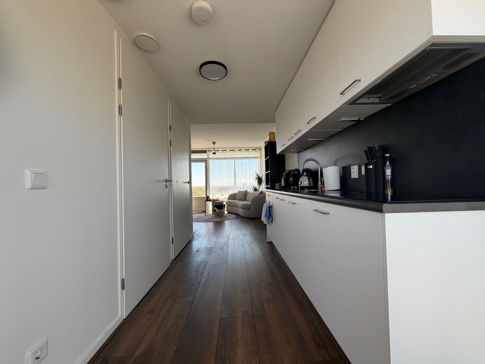 Bij binnenkomst stap je direct de keuken binnen, waar voldoende ruimte is voor het plaatsen van een eettafel. De keuken is voorzien van hedendaagse gemakken, zoals een inductiekookplaat, koelkast en afzuigkap. Tegenover de keuken bevindt zich de badkamer en in het verlengde van de keuken bereik je de woonkamer. Vanuit de woonkamer heb je toegang tot het balkon, wat zorgt voor een prettige buitenruimte. Daarnaast is er een praktische bergingskast aanwezig met aansluiting voor een wasmachine.