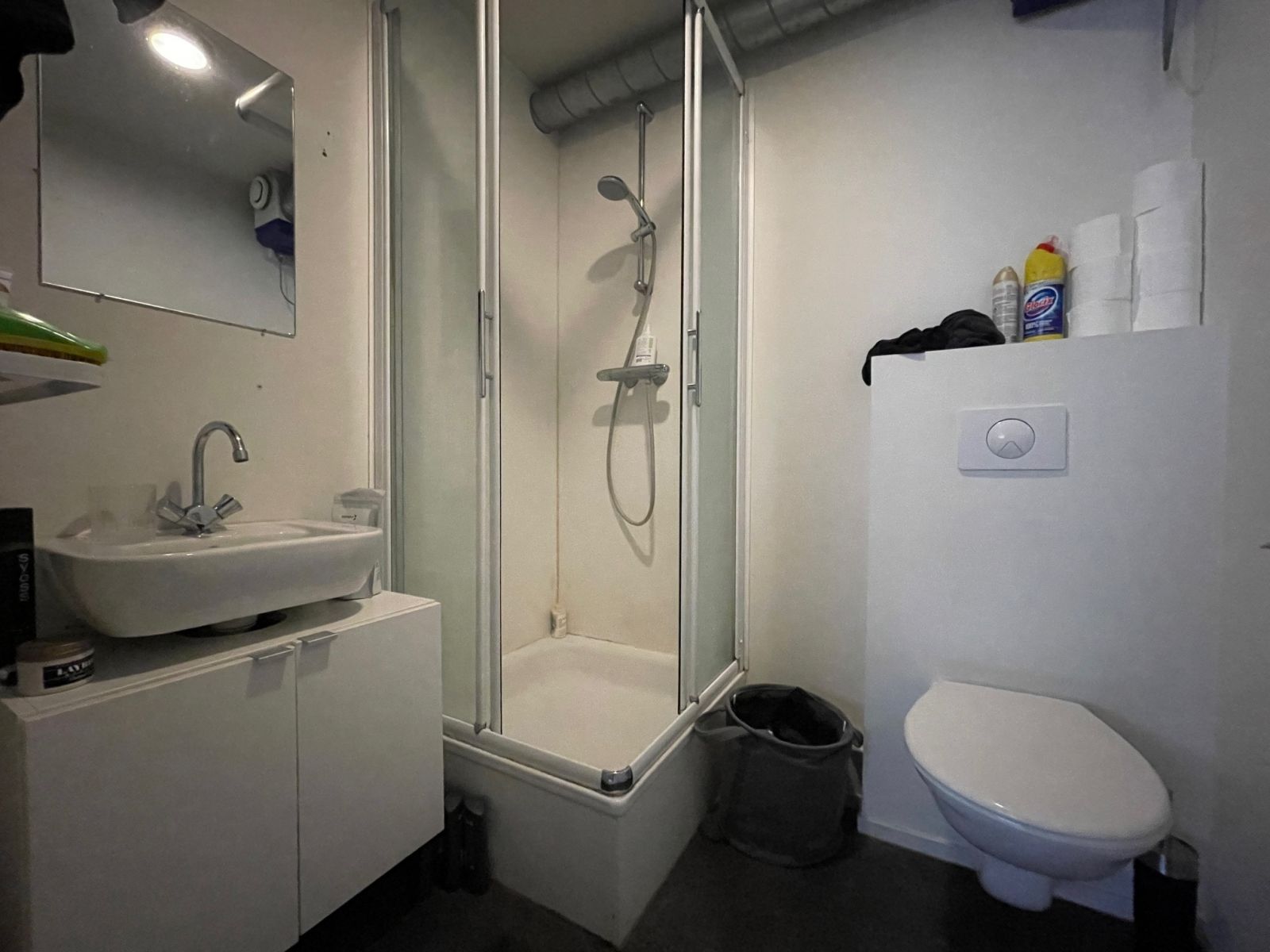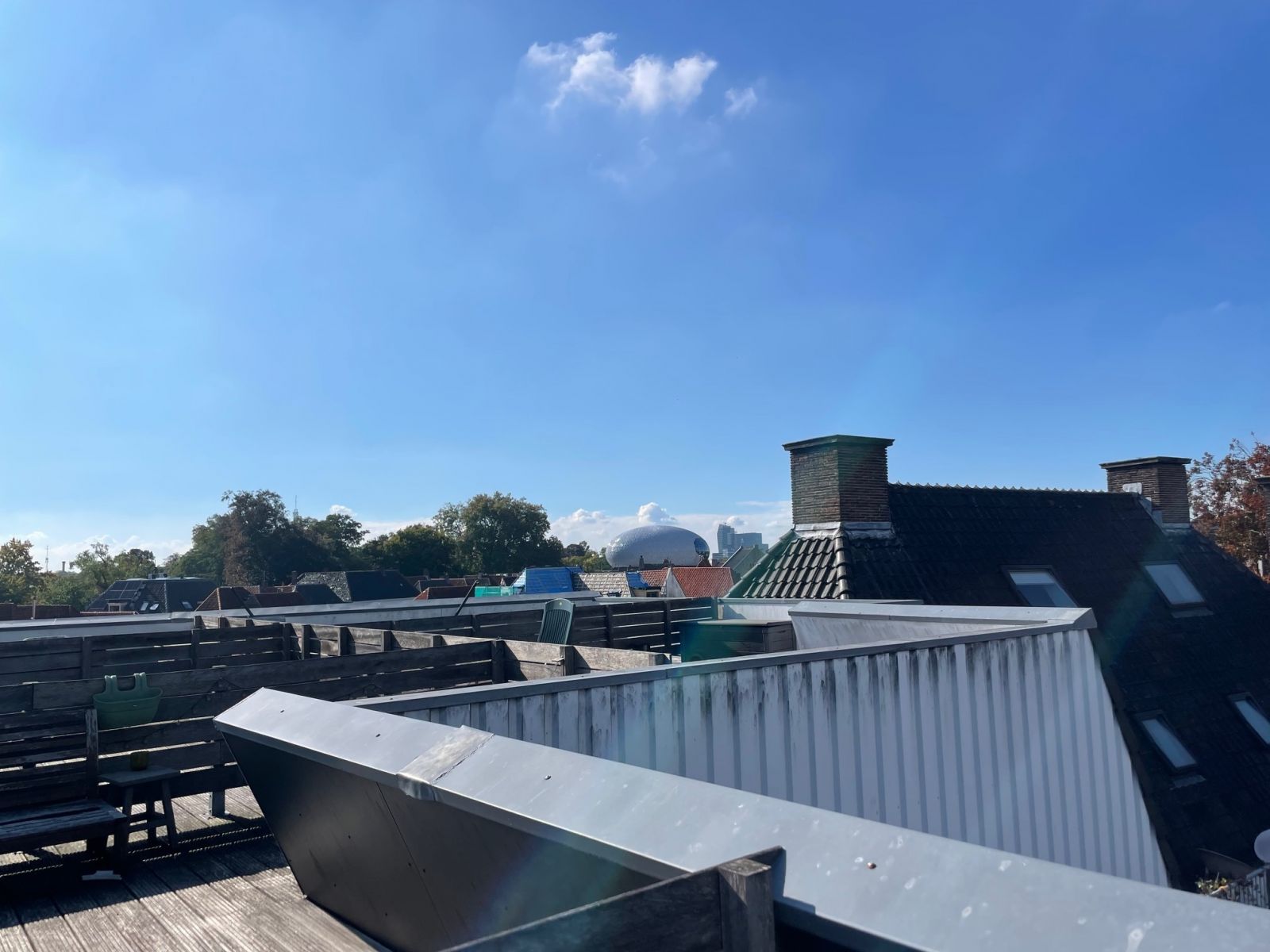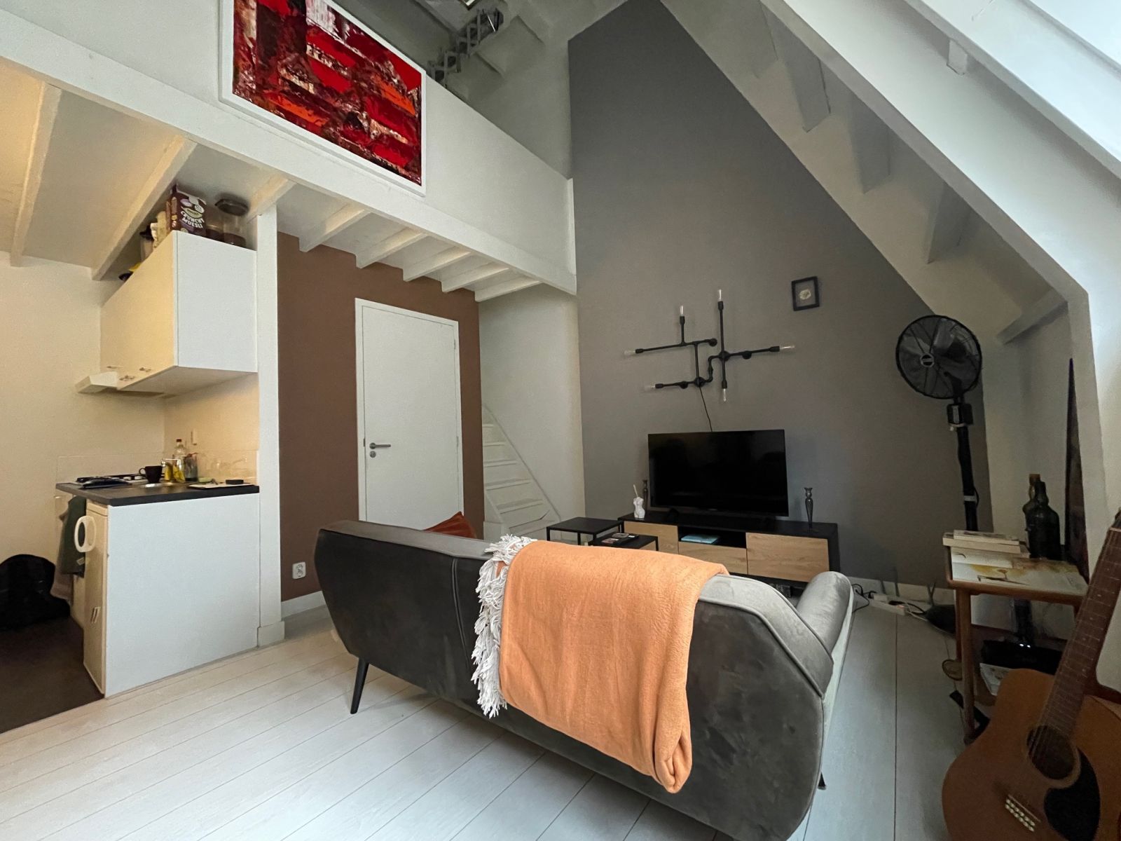 Woonkamer met een open keuken die voorzien is van diverse inbouwapparatuur zoals een koelkast met vriesvak, afzuigkap en een gasfornuis. De badkamer beschikt over een toilet, wastafel, douchecabine en handdoekradiator. Middels een trap bereikt u een vide, dit is tevens het slaapvertrek. Via een opvouwbare trap heeft u de mogelijkheid om gebruik te maken van het dakterras. In de kelder van het complex bevinden zich de bergingen. Daarnaast worden wasmachine en droger gedeeld.