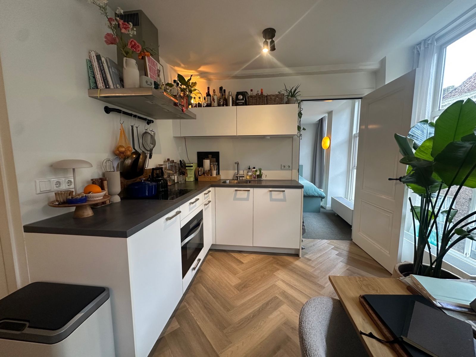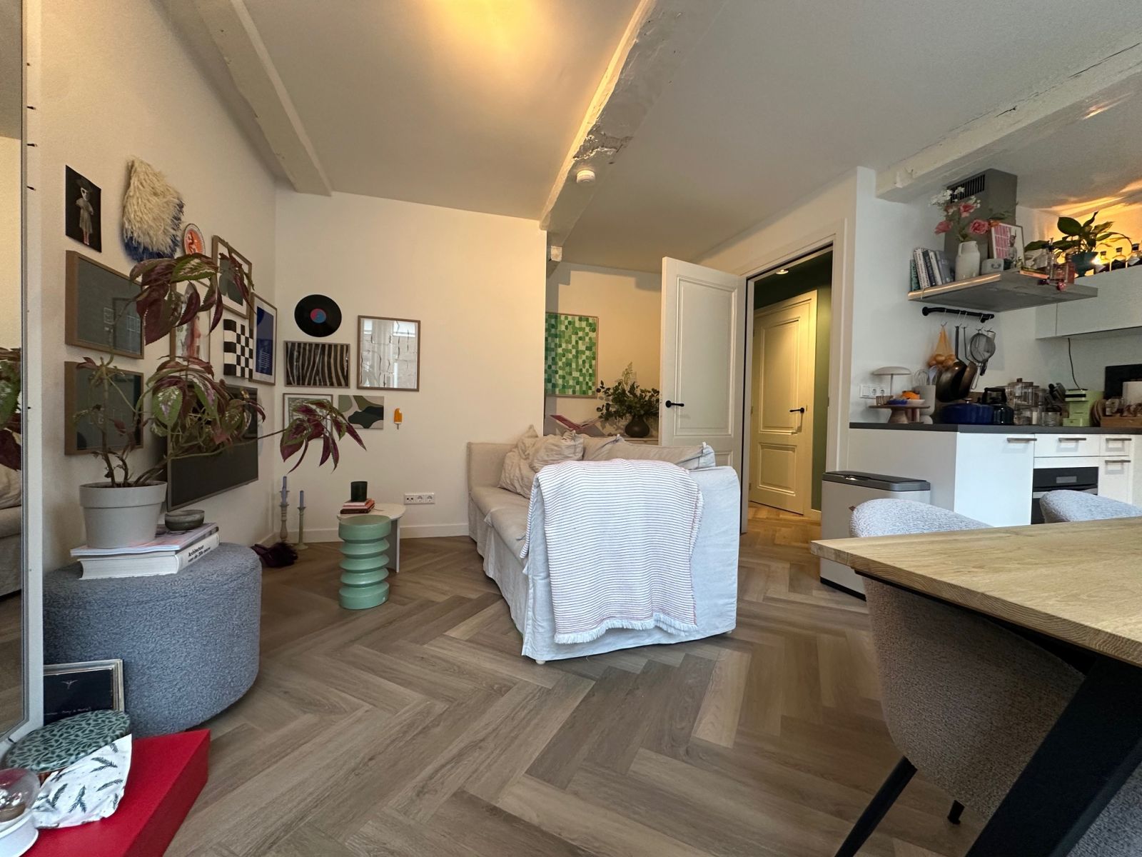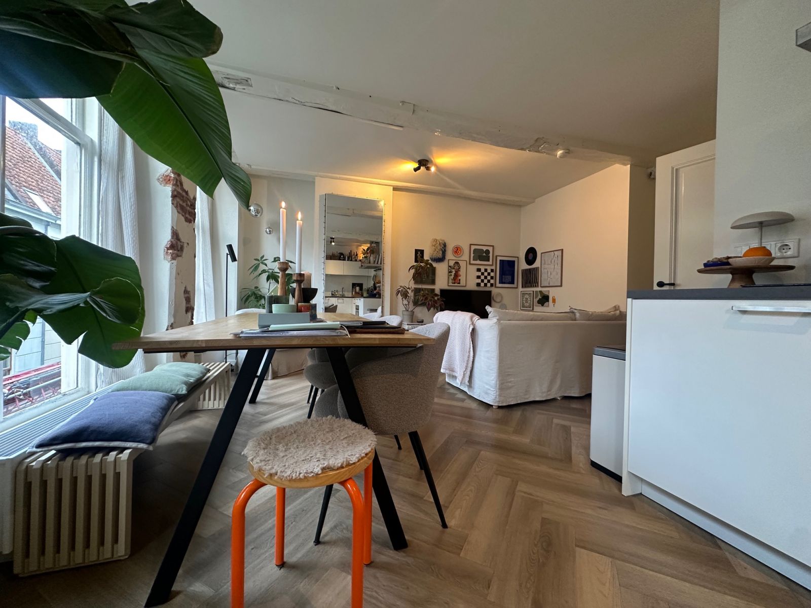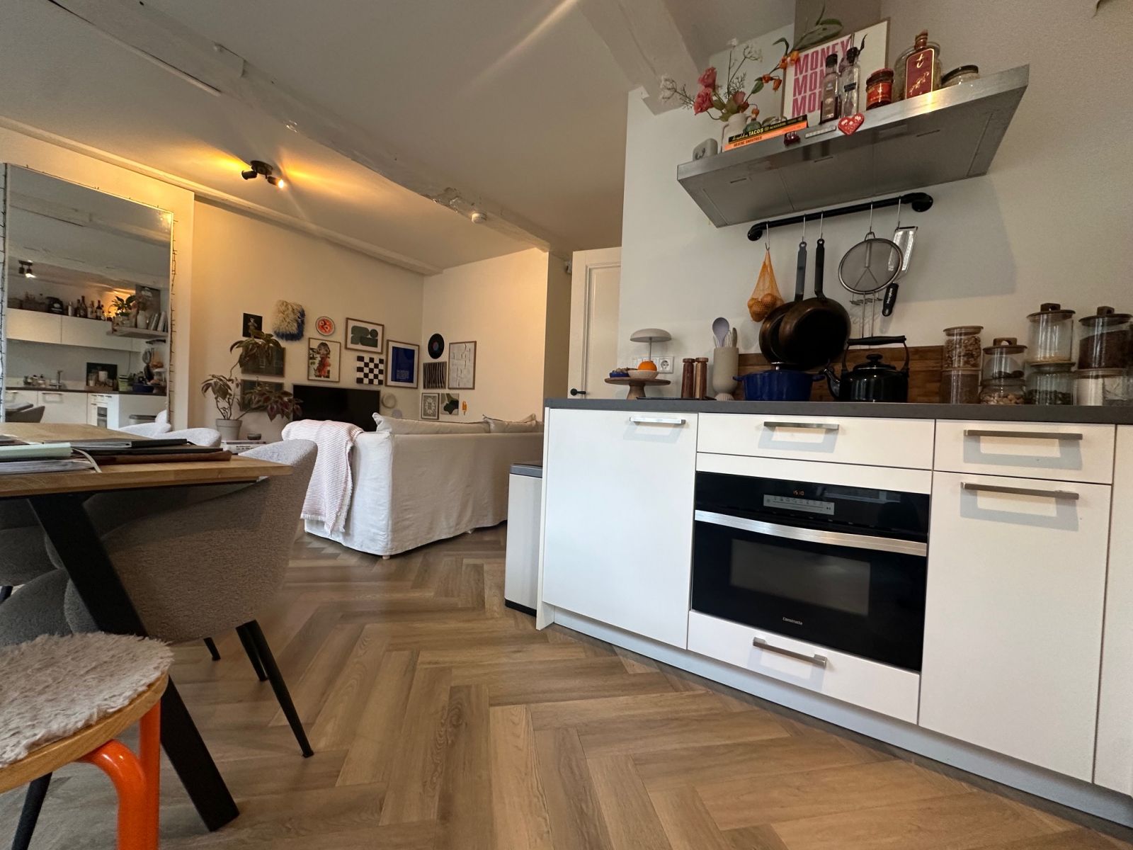 Het appartement is gelegen op de eerste verdieping welke u via een gemeenschappelijke entree bereikt. De woonruimte bevindt zich aan de voorzijde van het pand. Bij binnenkomst in de hal treft u middels de hal het separaat toilet aan. De woonkamer straalt luxe en warmte uit door de combinatie van o.a. de houten visgraatvloer en de orginele balken. De keuken is voorzien van een ingebouwde inductiekookplaat, de weggewerkte afzuigkap, combi-oven, vaatwasser, koelkast met vriesvak.