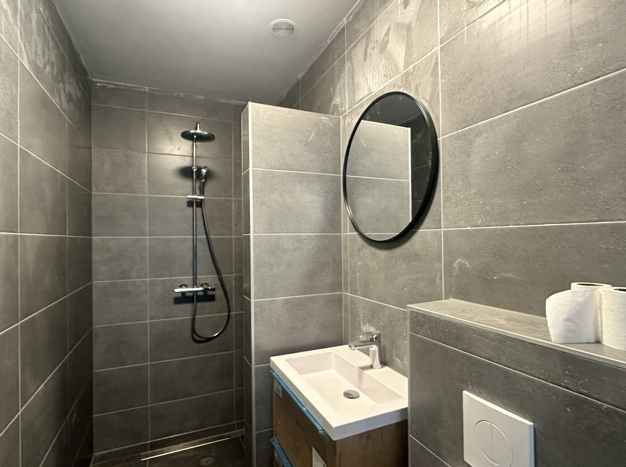 De woon-/slaapkamer van 32 m2 beschikt over een (split)airco waarmee de studio zowel verwarmd als verkoeld kan worden, de keuken is voorzien van een luxe mengkraan, spoelbak, inductiekookplaat, vaatwasser, koelkast (met vriesvakje), afzuigkap en een combimagnetron. De badkamer is voorzien van een inloop (regen)douche, een hangend toilet en een wastafelmeubel.
